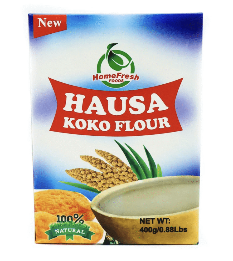 Hausa Koko Flour is a finely milled, fermented millet or sorghum flour used to prepare Hausa Koko, a spicy West African porridge. It has a slightly tangy flavor and is typically cooked with water and spices, served as a warm breakfast or snack.